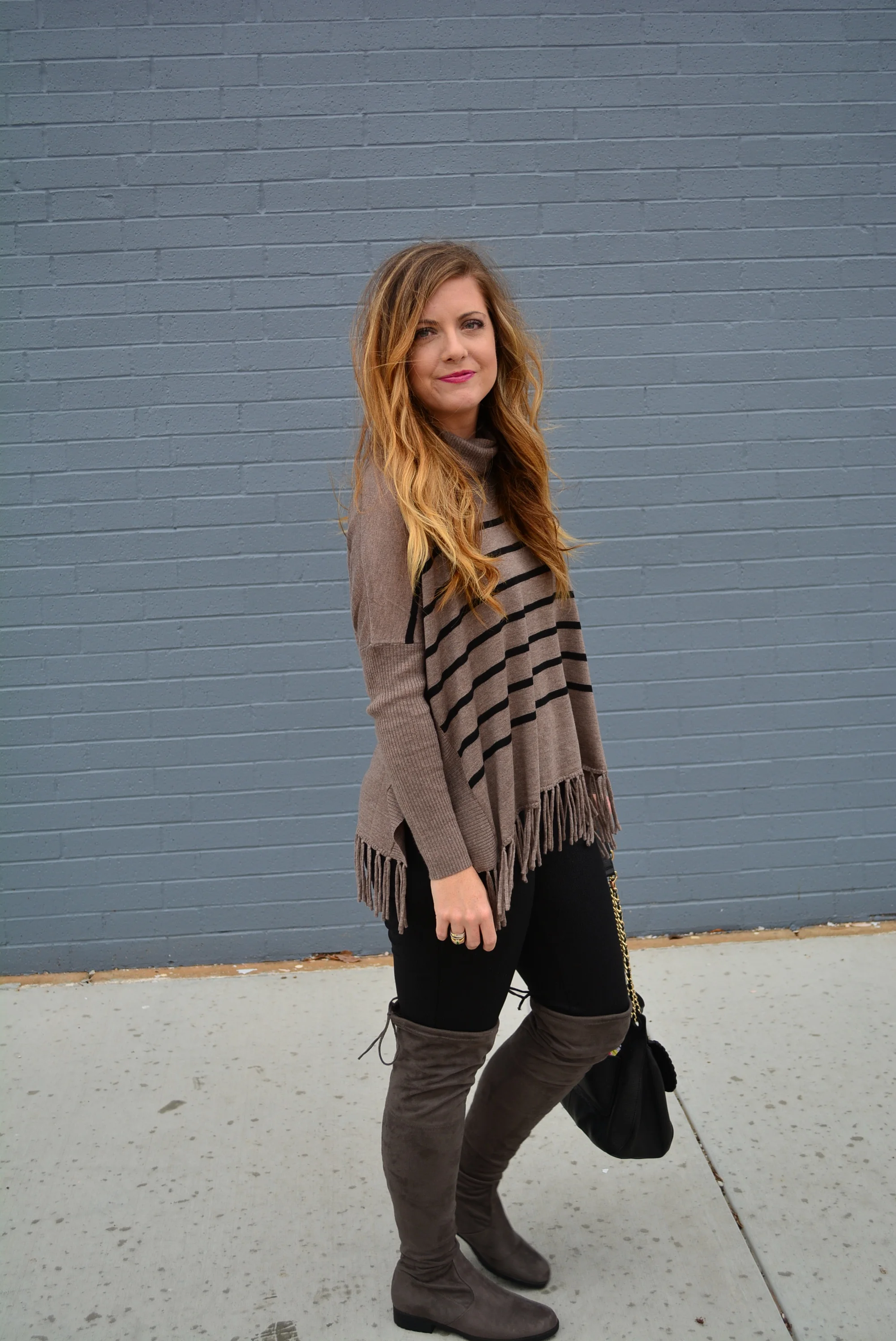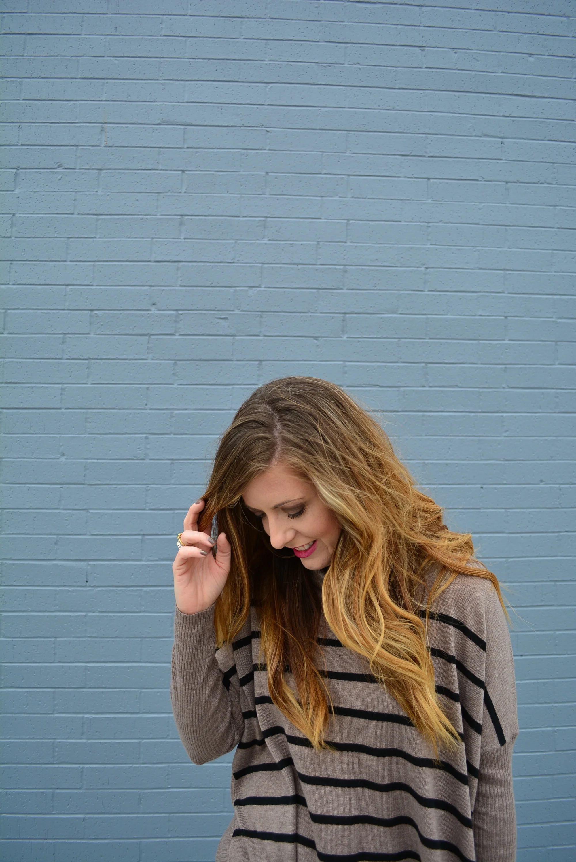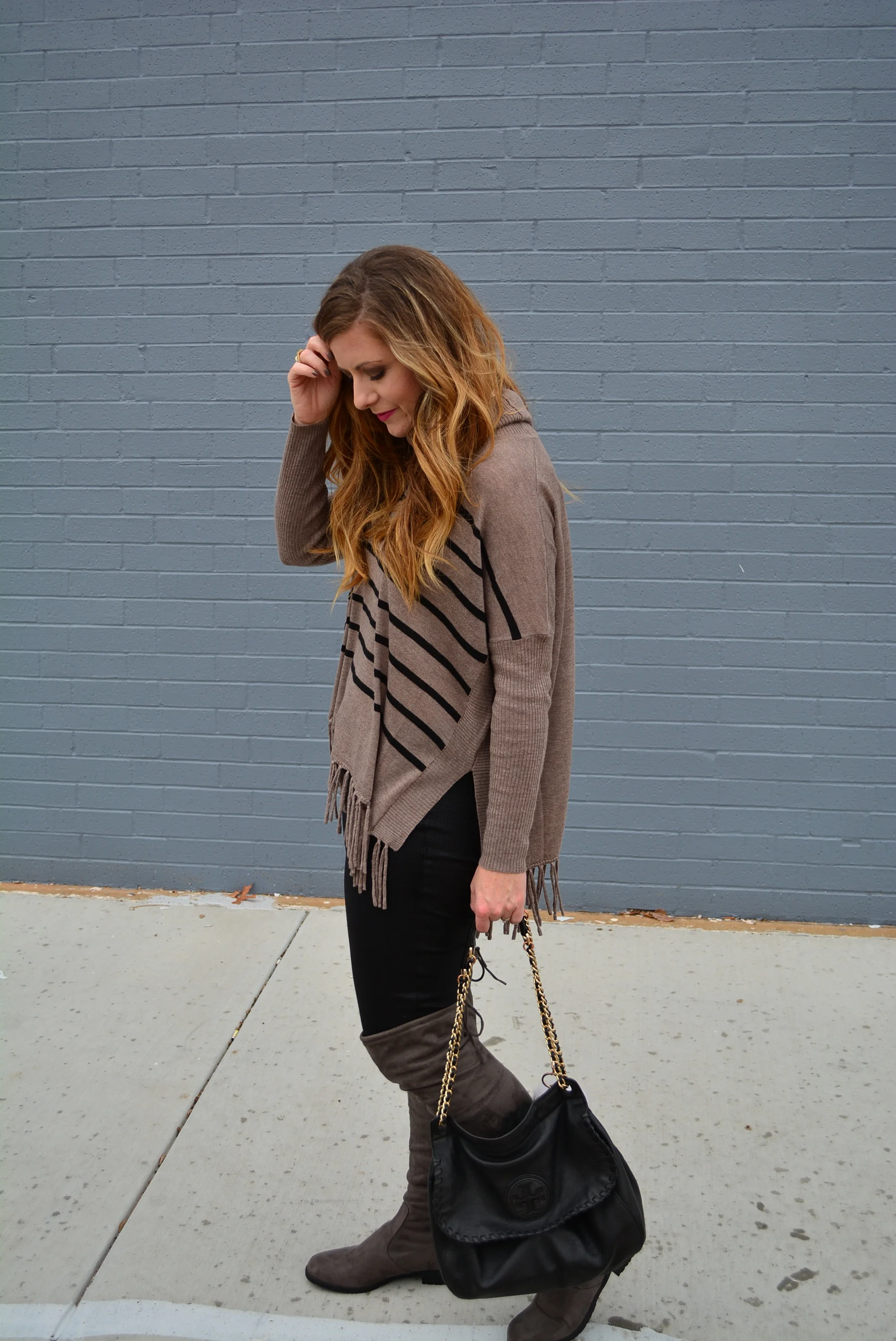 Scoobie stripe sweater, LOFT coated jeans (old) similar here, DSW 'OTK' boots, Tory Burch bag (old) similar here