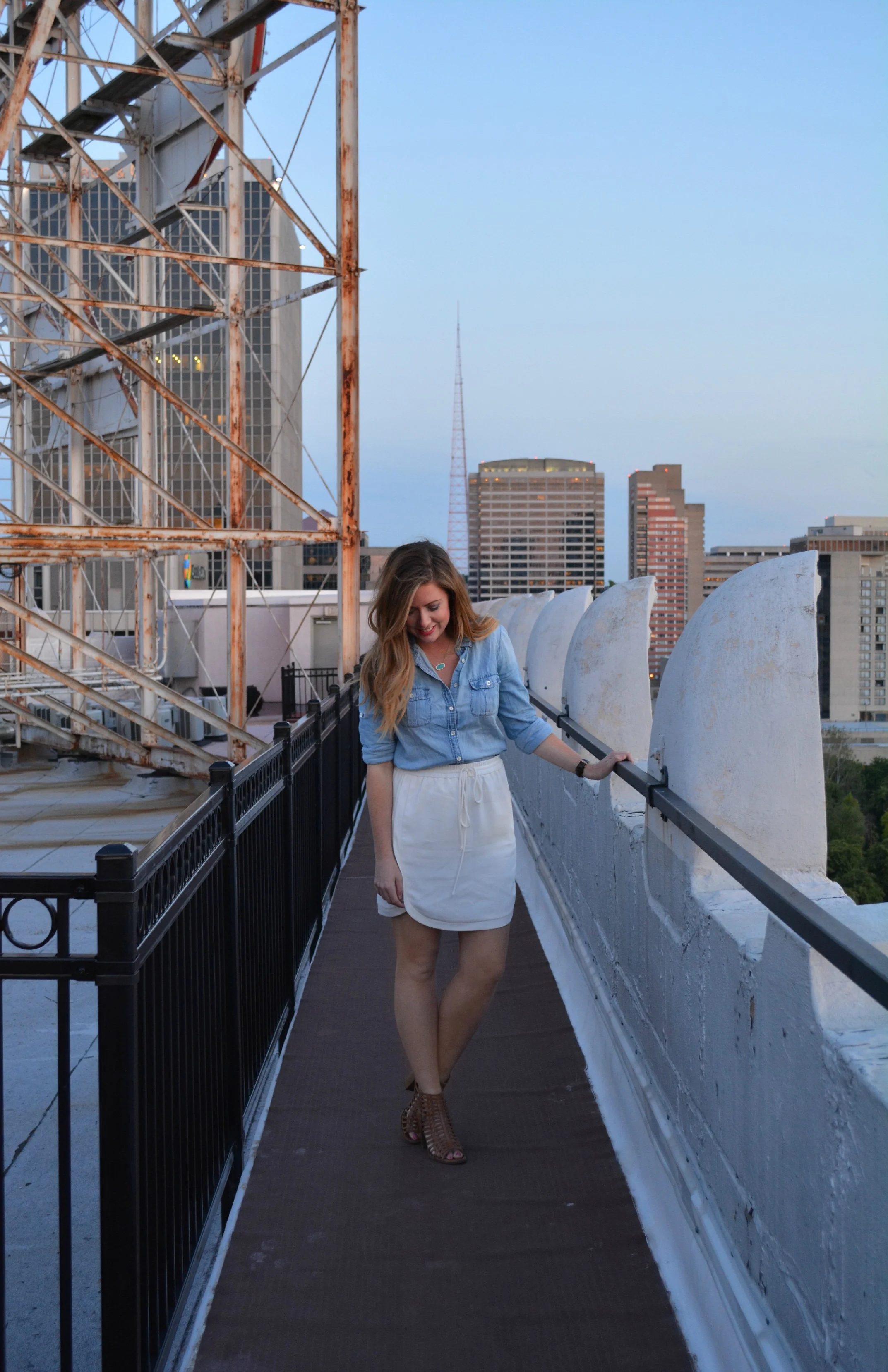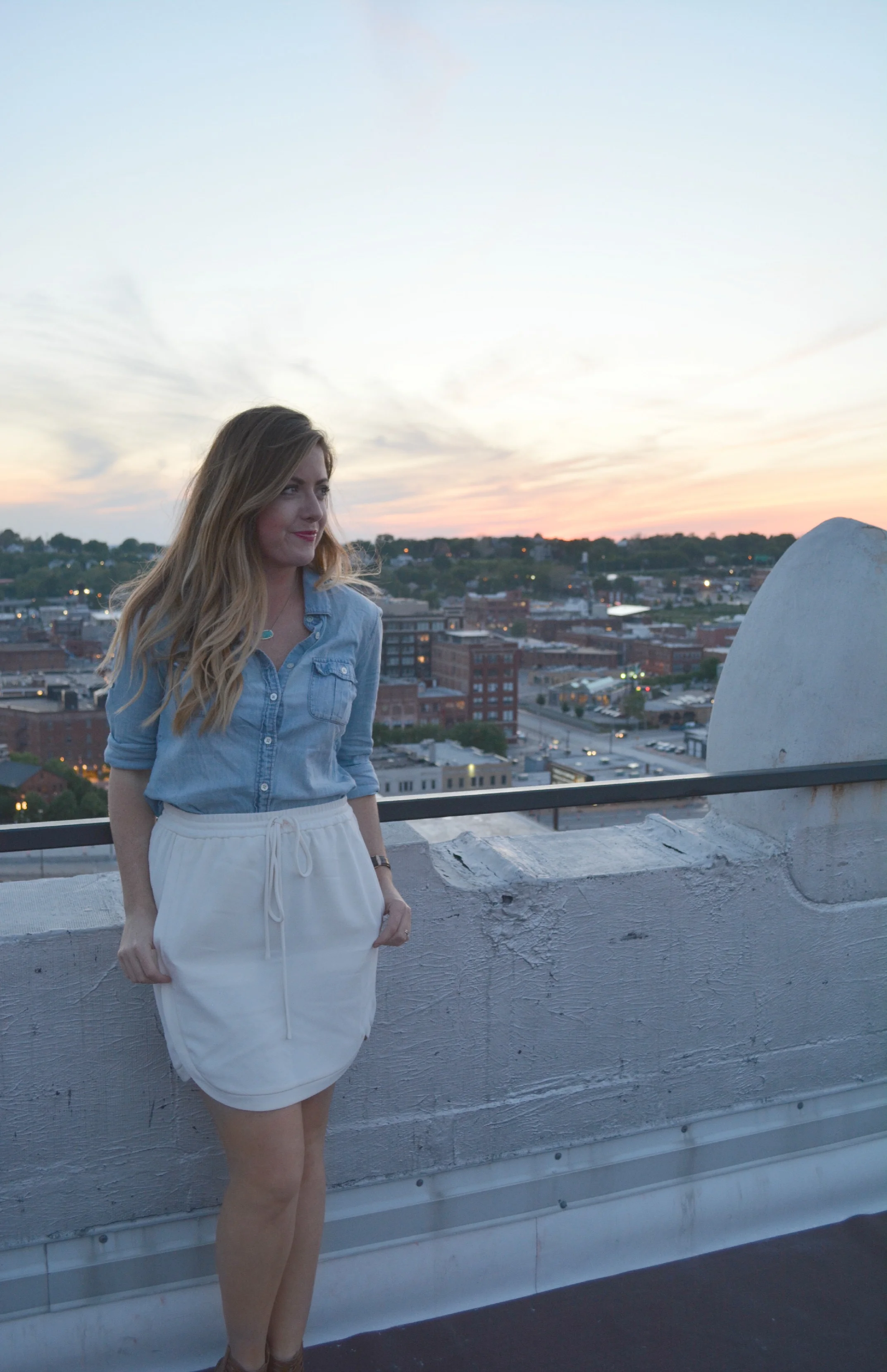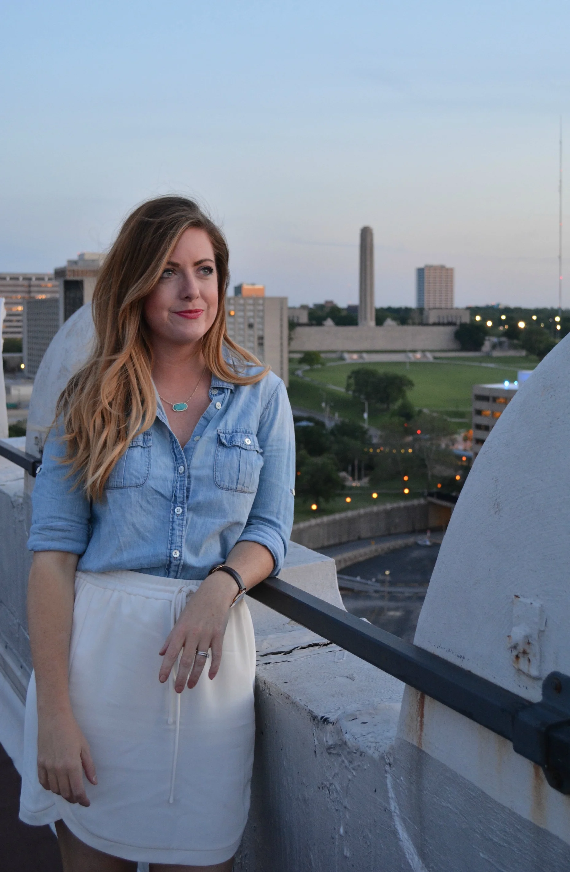 STYLE TIP: When heading to a casual dinner know you can totally wear a casual chambray shirt with a great skirt and sandals. Wear a top that you would wear with shorts during the day and throw on a skirt you love for dinner. And be sure to add a pair of shoes you just love and can walk in!
