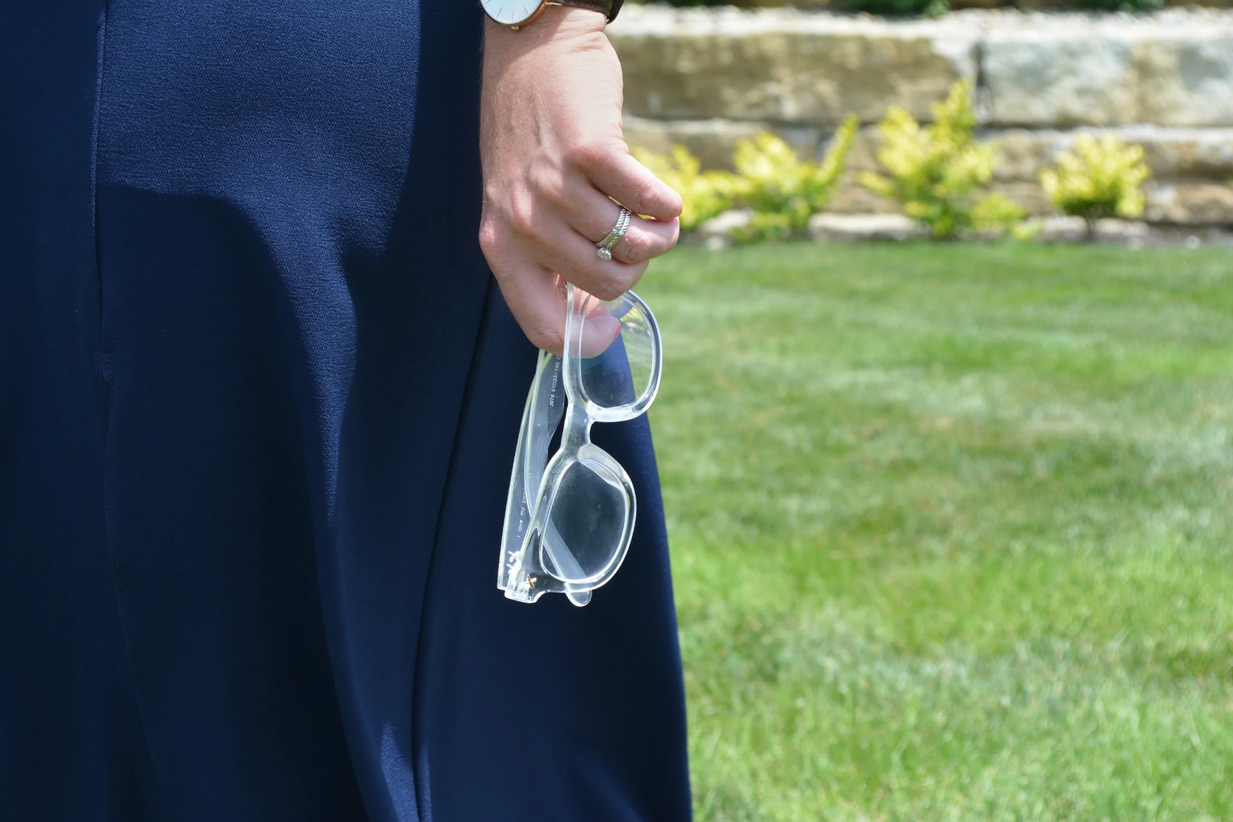 STYLE TIP: When you are looking for a new pair of glasses, you want to get your pupil measurement from your doctor. And pick a lens that your pupil then sits in the middle of. This will create the most balanced look for your face. Oh, and have fun with shapes! I tend to go with cat eye and aviators as those are most flattering for my face shape:)