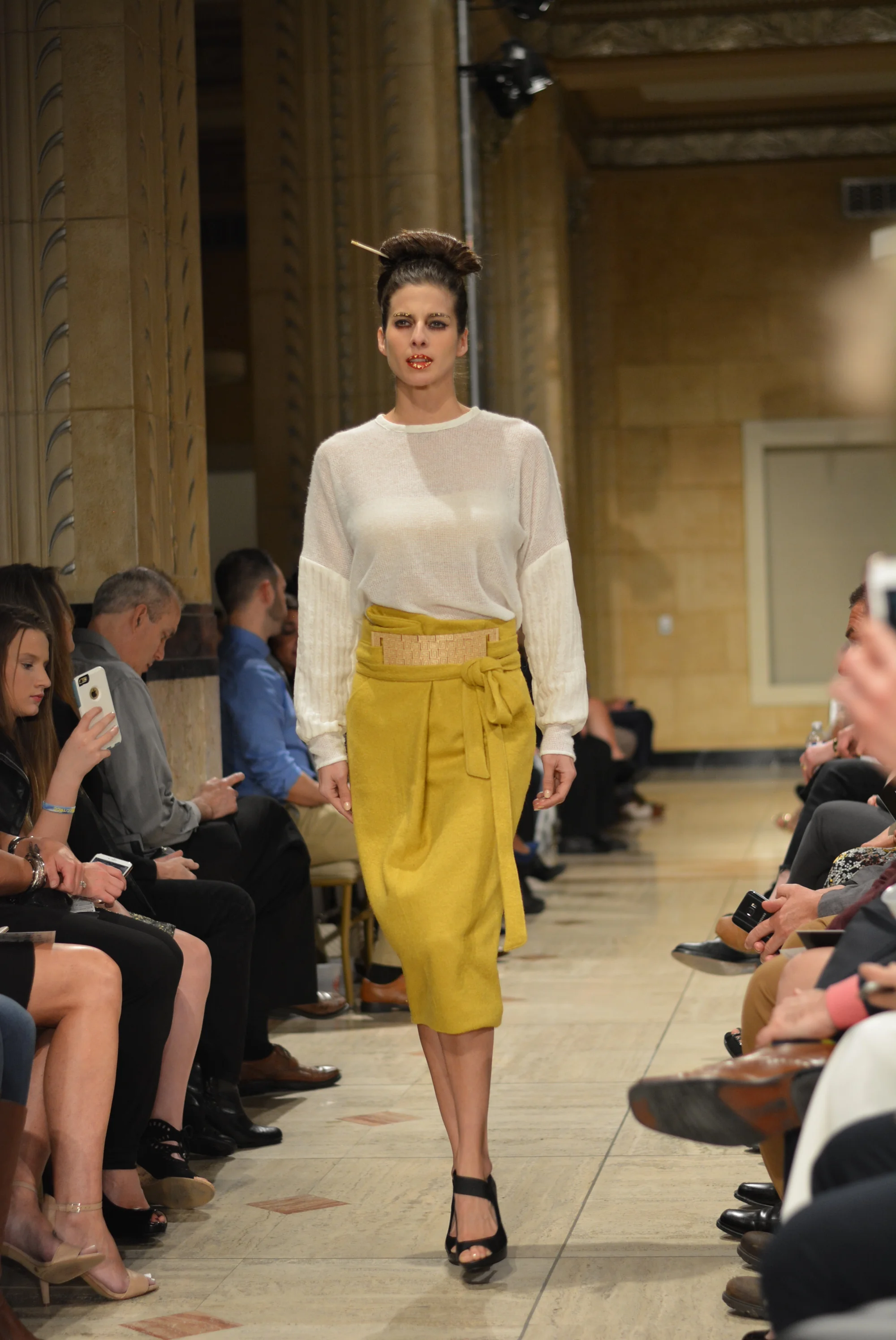 The Thursday night show ended with the collaboration of More than Just Figleaves + Erin Paige! I was blown away by this collection of layered pieces. I love how there was such a mix of pattern and silky textures. And then of course I loved the layers and natural elements of the Erin Page jewelry. Her pieces take me back to when I was jewelry class in college and loved using cooper and different patinas to create different looks. Her style creates a statement! And I just love that!