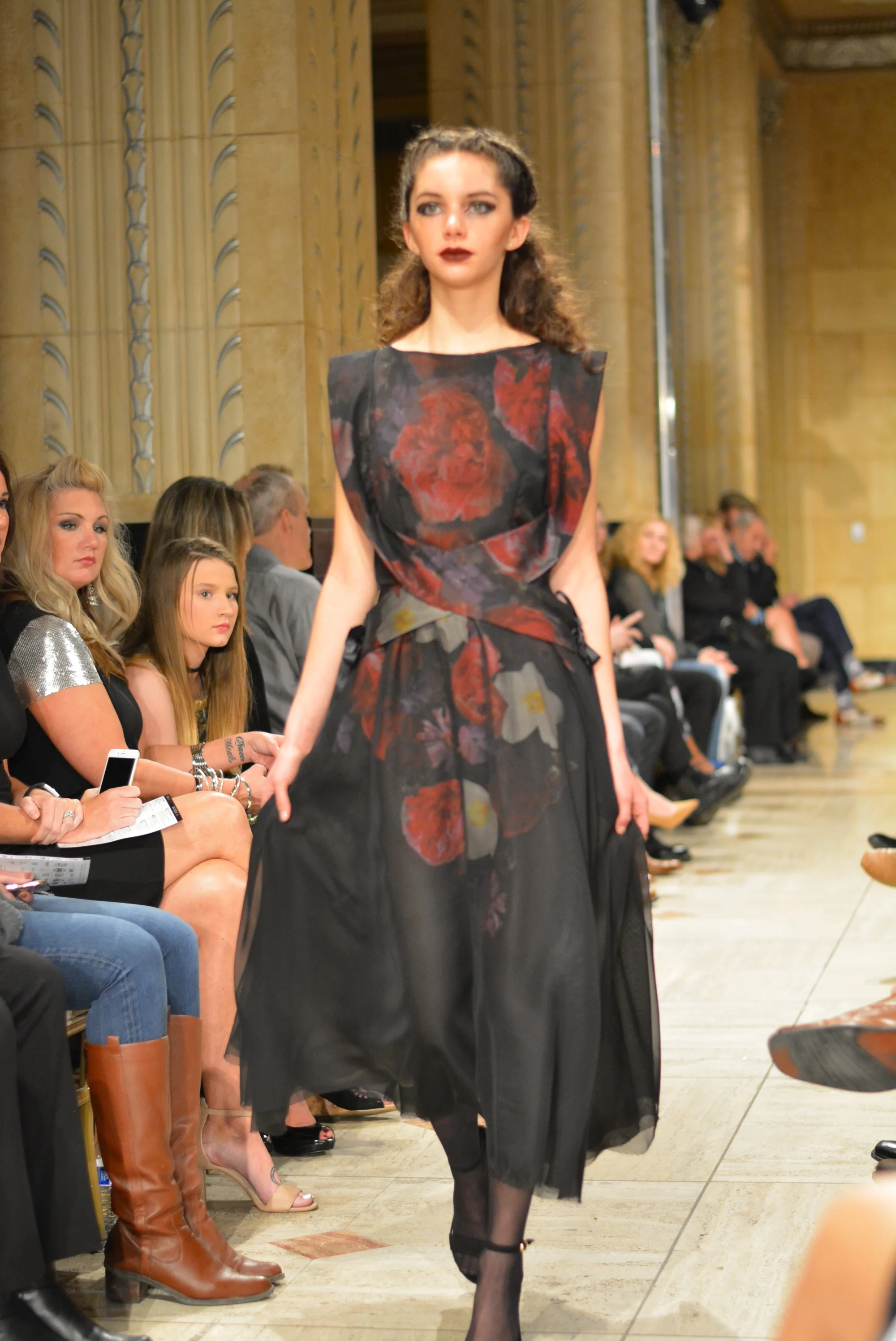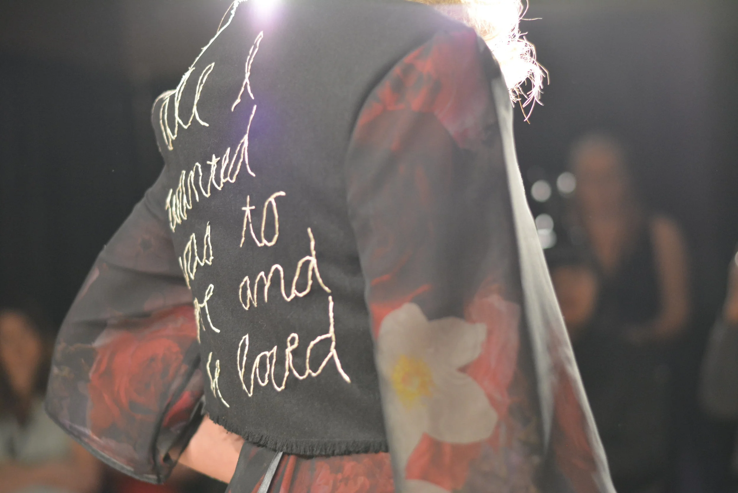 The Madyssen Jean collection was so cohesive, romantically gothic with a touch of emo too. There were touches of hand embroidered lyrics/words on many of the pieces, that definitely had my thinking of my Dashboard Confessional days. But, truly the flowy printed sheer fabric, that was spread through out the collection, was gorgeous and looked perfect with each look.