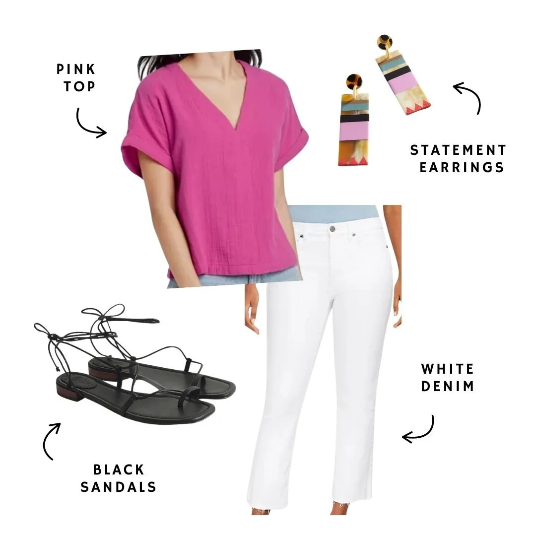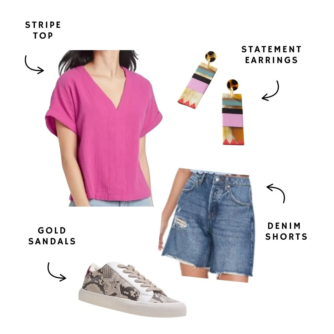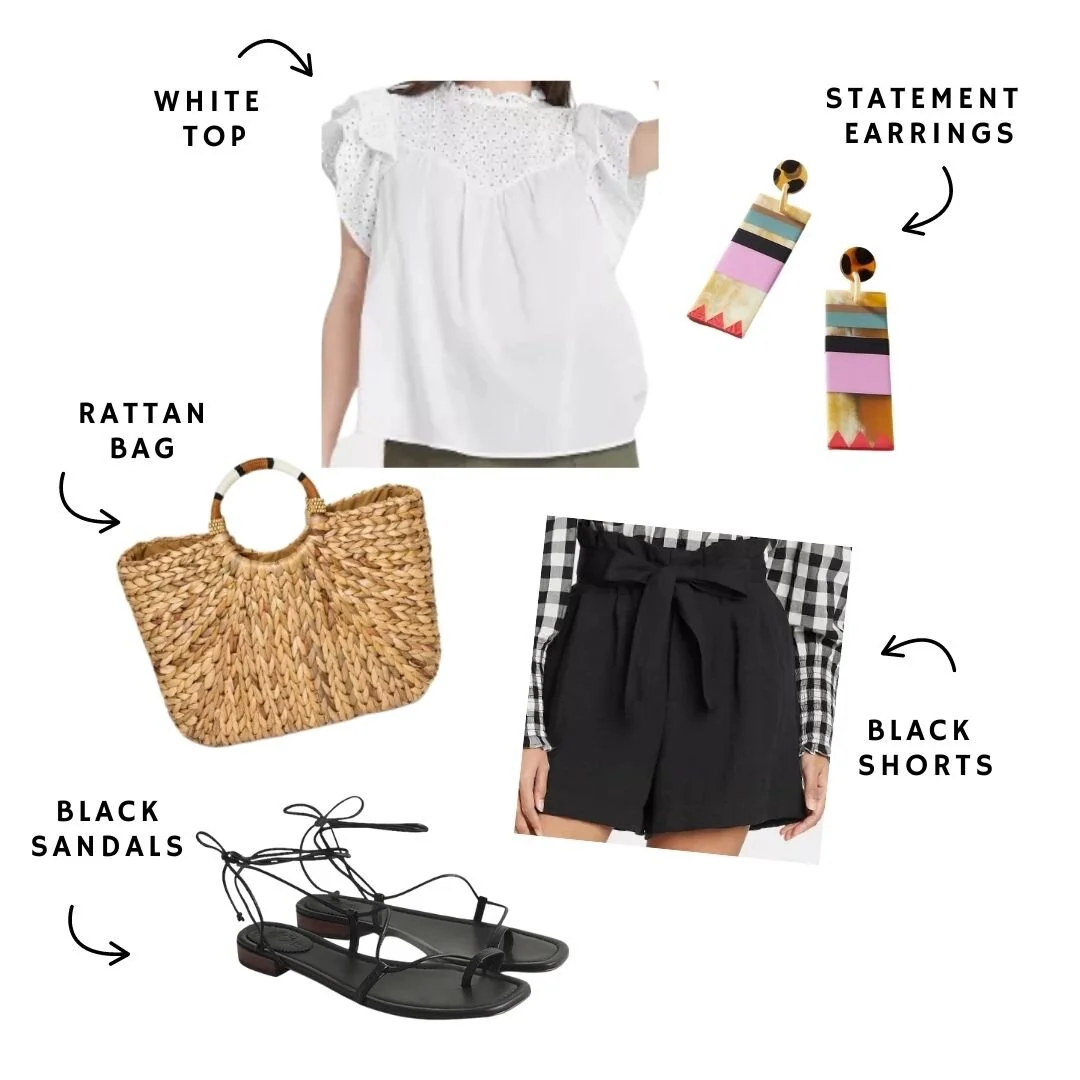 This past year has been insane. When the world shut down, I know I did. Right!? Like, we’re home, we’re still home. Kids are home, husbands are home, parks are closed, stores are closed. We can’t go see family, we can’t travel, we can’t see friends. It was tough. There’s so much more to unpack. But, I don’t know about you but your girl ate a LOT of her feelings. Never worked out. Drank more, who didn’t. And survived by wearing nursing tank tops and skorts from Costco. There wasn’t anything to get dressed up for. I mean in the name ov all of my vanity, I didn’t wear makeup, everyday. I’ve worn makeup everyday since I was like 12. (Yes, it was freeing, and I was hot so it would have melted off, but I’m glad I could do that just not for why I did it.) So, I didn’t buy a ton of things for a summer spent at home. And the summer before that I was pregnant with Georgia, so I have a few dresses that are salvage-able. But not a ton. So, as far as a summer wardrobe it’s my pre-pregnancy clothes from three summers ago. LOL! Grrrrrreat! And that’s why I wanted to create this casual yet cute spring capsule wardrobe. Because I knew if I was feeling some sort of way about my cuteness & my clothes, I thought you were too. And you can hover over each item above and click on each picture to take you directly to the items to shop. If you’d prefer to shop the items per category, keep scrolling. I made it easy for you. Like, if you need new shorts, I got you. If you need new tops, I got you!