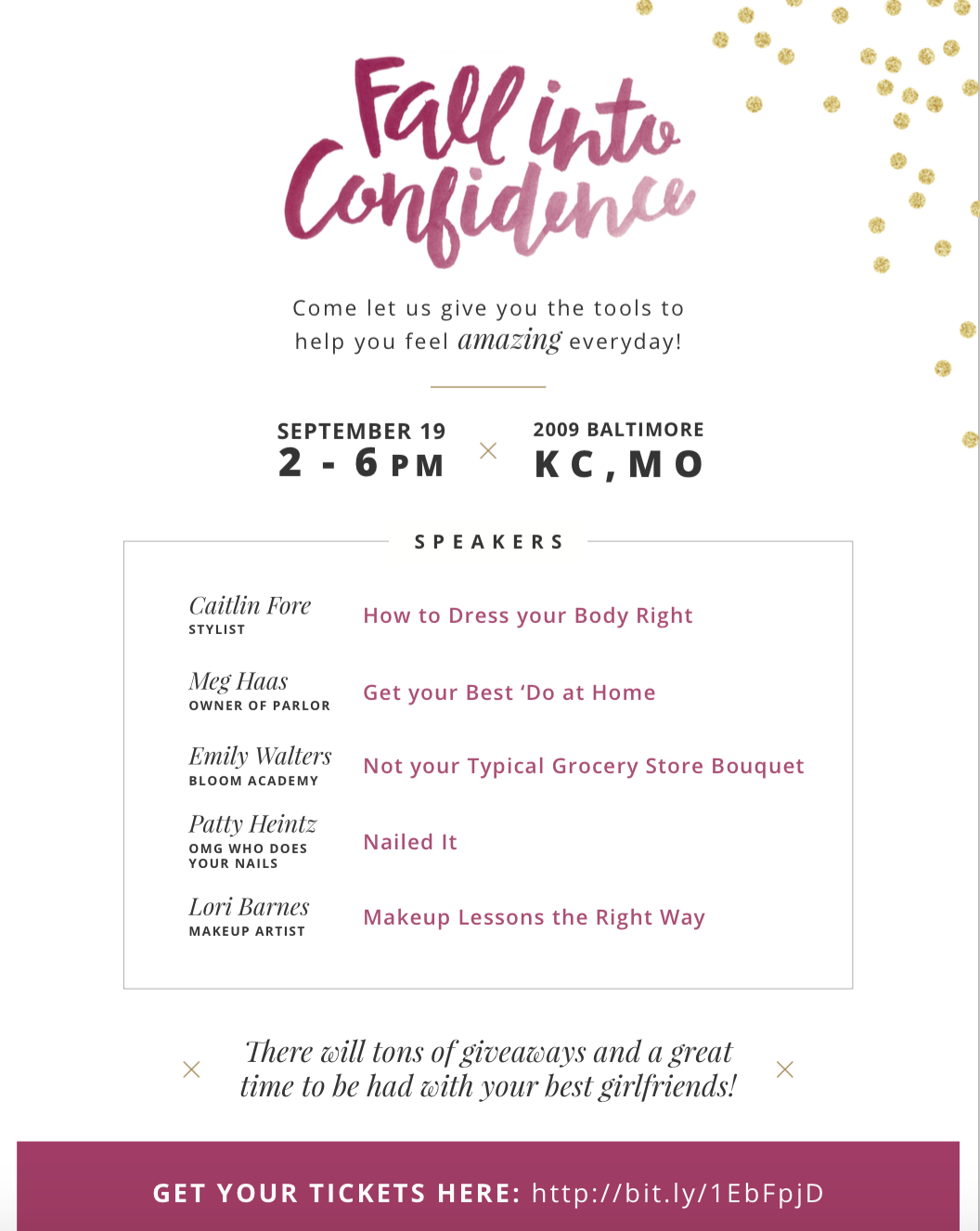 After working at stylist for over a decade Caitlin Fore of Sophisticaited.com wanted to create an event where women could learn everything they need to know in order to feel great about themselves, everyday. She has teamed up with four Kansas City entrepreneurial women, Megan Hass for Parlor, Patty Heintz of OMG – Who Does your Nails!?, Lori Barnes from Born in High Heels, and Emily Walters from The Bloom Academy who strive to teach new skills to improve their everyday life.